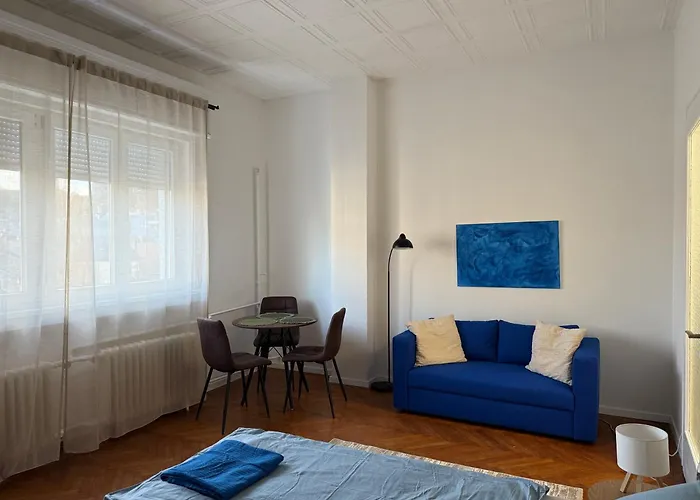 L'appartement est situé à moins de 2 km de la gare Nyugati et assez proche de Ábrahám Ganz Foundry Collection. Ces appartements Buda Blue se trouve à 800 mètres du train urbain Batthyany ter et à 10 minutes en voiture des Chaussures sur le Danube. L'appartement est niché à 2 km du Parlement de Budapest.